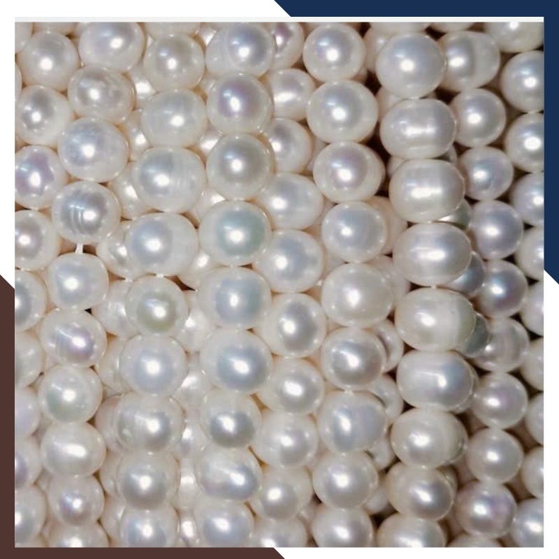 Chuỗi ngọc trai nguyên liệu 8-9mm là các dây chuỗi được tạo thành từ nhiều viên ngọc trai 8-9mm cùng màu sắc, chất lượng được xâu lại thành một chuỗi theo độ dài tiêu chuẩn 36cm, sử dụng làm nguyên liệu cho việc chế tác các món trang sức như vòng cổ, vòng tay, khuyên tai, và các phụ kiện khác như kẹp tóc, cúc áo, đính trang trí trên áo dài, túi xách, hoặc làm điểm nhấn cho các sản phẩm thời trang khác.