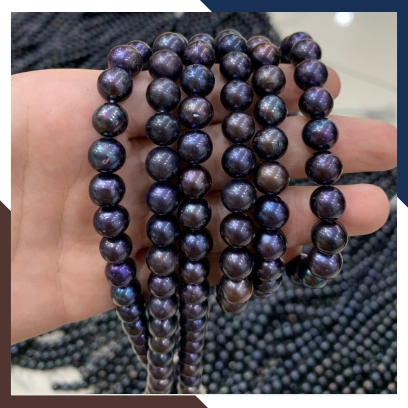 Sỉ ngọc trai đen dạng chuỗi nguyên liệu size 8-9mm làm vòng cổ vòng tay mã AC280