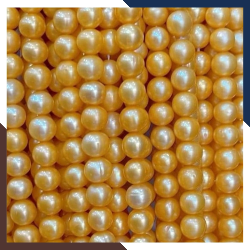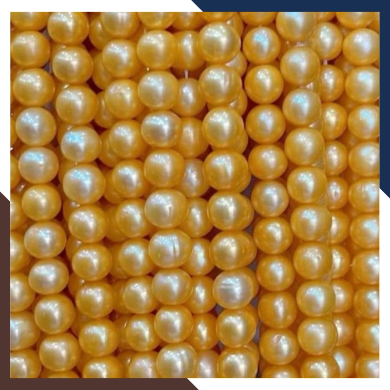 Chuỗi ngọc trai nguyên liệu màu vàng size 7-8mm và 8-9mm mã AC310, là dây chuỗi được tạo thành từ nhiều viên ngọc trai màu vàng size 7-8mm hoặc 8-9mm được xâu lại thành một chuỗi theo độ dài tiêu chuẩn 36cm, sử dụng làm nguyên liệu cho việc chế tác các món trang sức như vòng cổ, vòng tay, khuyên tai, và các phụ kiện khác như kẹp tóc, cúc áo, đính trang trí trên áo dài, túi xách, hoặc làm điểm nhấn cho các sản phẩm thời trang khác.