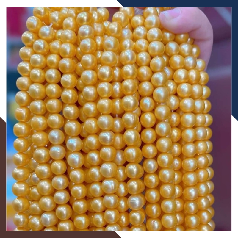 Kiểu dáng: Chuỗi ngọc trai nguyên liệu màu vàng size 7mm - 8mm và 8mm - 9mm dài 36cm