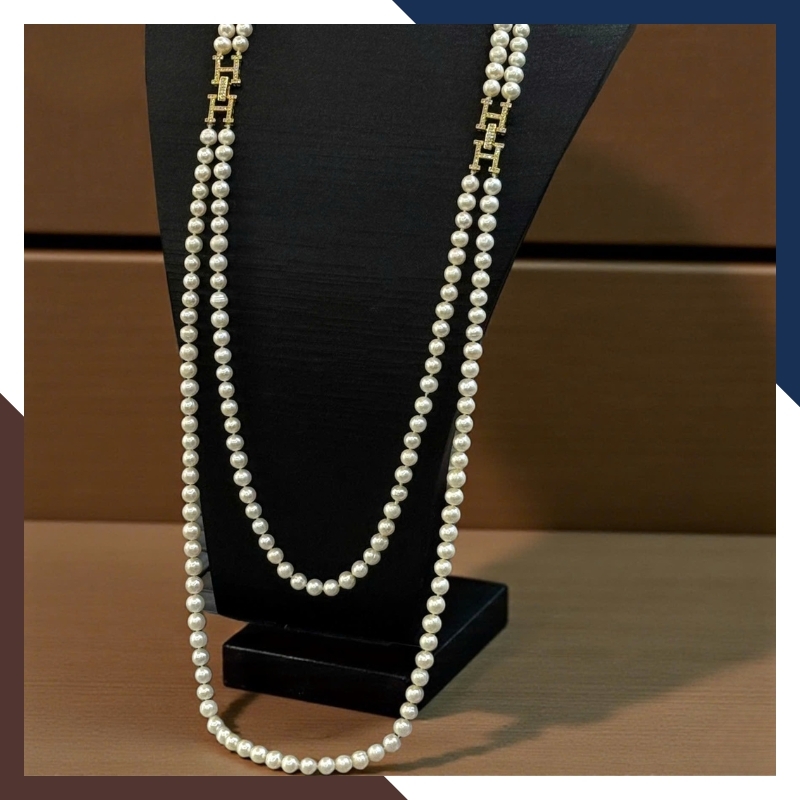 VCNT183 – Chuỗi Ngọc Trai Cho Outfit Cổ Sâu & Blazer, Layer Dài 60–80cm