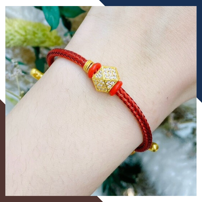 Kiểu dáng: Vòng charm vàng 24k ( vàng ta 9999 ) hình bi bát giác đính đá