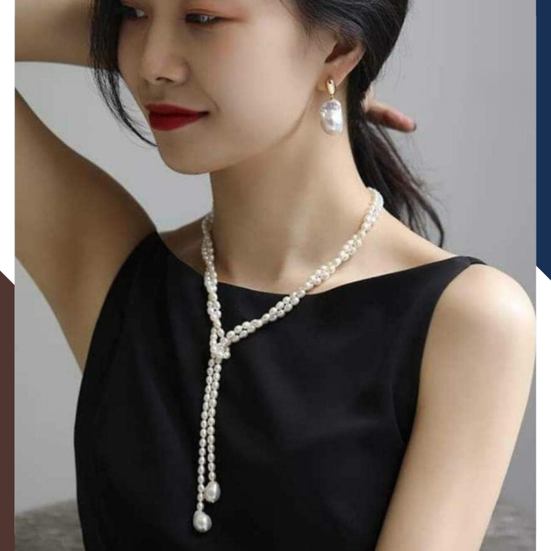 Vòng cổ ngọc trai dài 135cm đeo được nhiều kiểu cho nữ mặc áo dài trẻ trung mã 45CH260