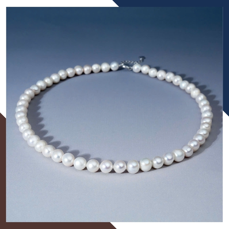 → Thiết kế chuỗi ngọc đơn hạt to đồng đều, kết hợp khóa bạc xi bạch kim cao cấp, tôn vinh phong thái tinh tế và đẳng cấp.