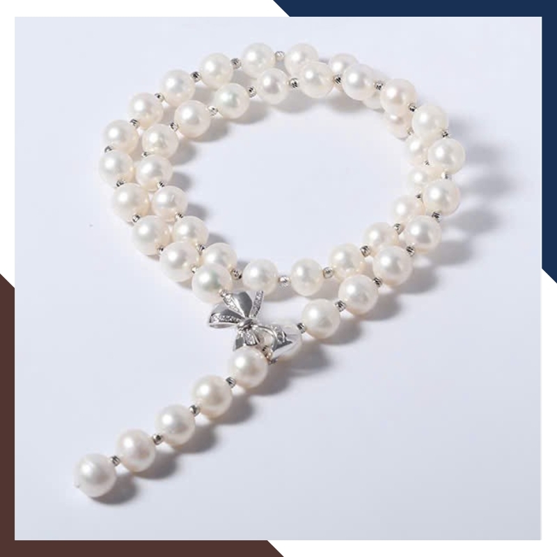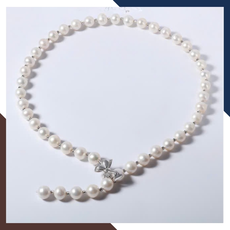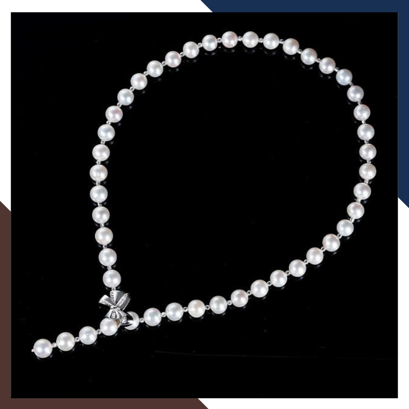 → Là mẫu vòng cổ ngọc trai nước ngọt cao cấp của Ngọc trai Anchi, phối hạt ngọc trai tròn 8–9mm xen kẽ bi bạc 925 và khóa nơ tinh tế, mang phong cách thanh lịch, sang trọng.