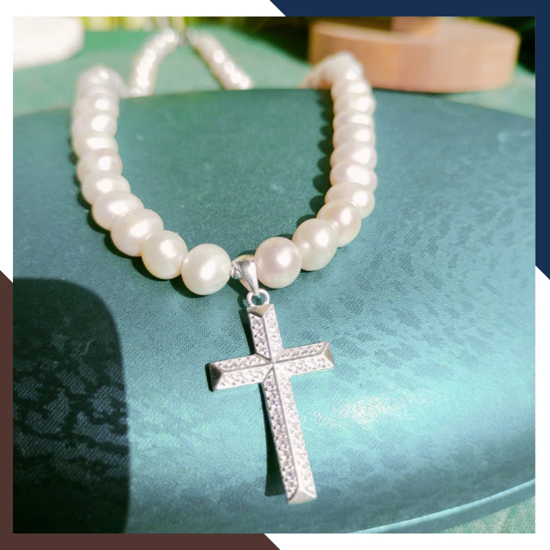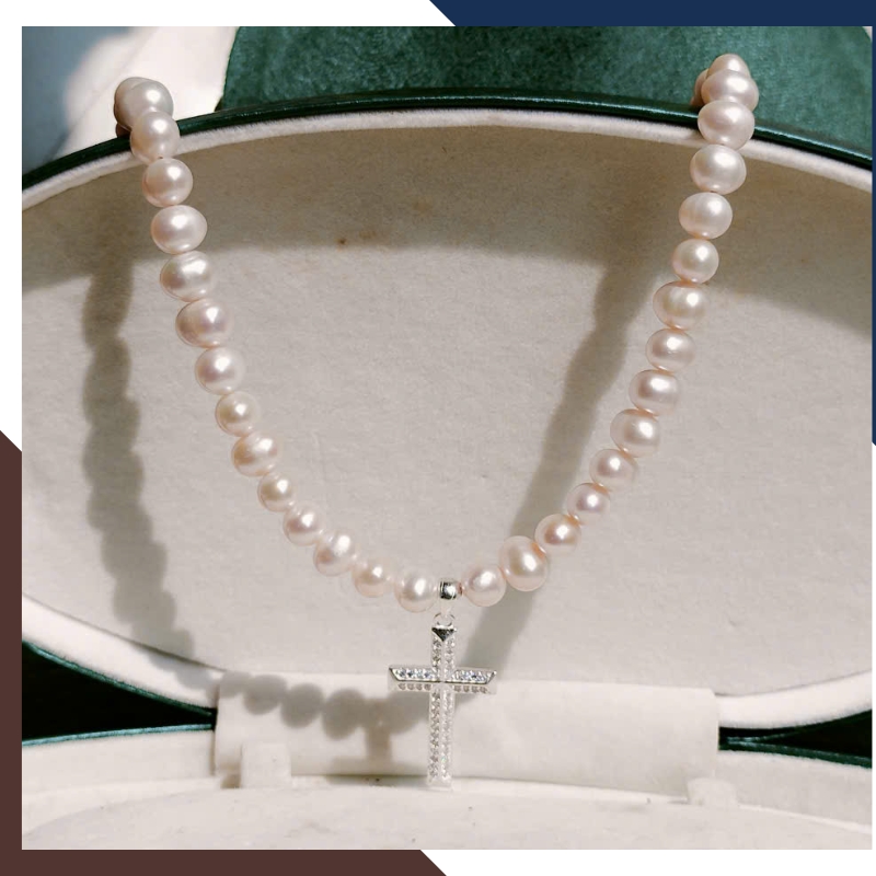 Sản phẩm " Vòng cổ ngọc trai thánh giá bạc đẹp mã VCNT98 ", được gia công trực tiếp tại xưởng không qua khâu trung gian đảm bảo giá thành cạnh tranh