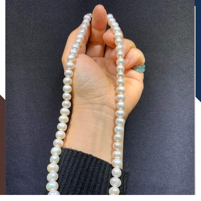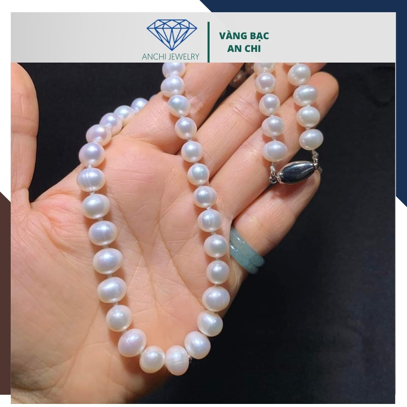 Ngọc trai thật nuôi nước ngọt tự nhiên cao cấp, hạt tròn 8-9mm, màu trắng, xà cừ dày, bề mặt bóng mịn, hiếm vết sinh trưởng