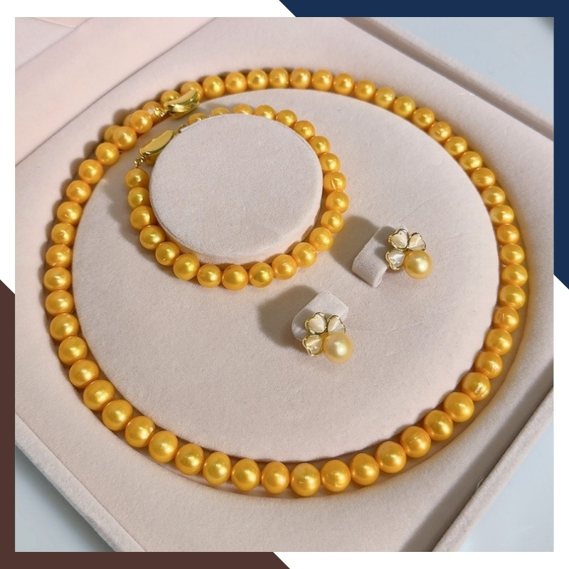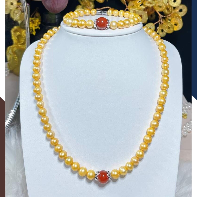 Vòng cổ ngọc trai màu vàng mang lại sự sang trọng và quý phái