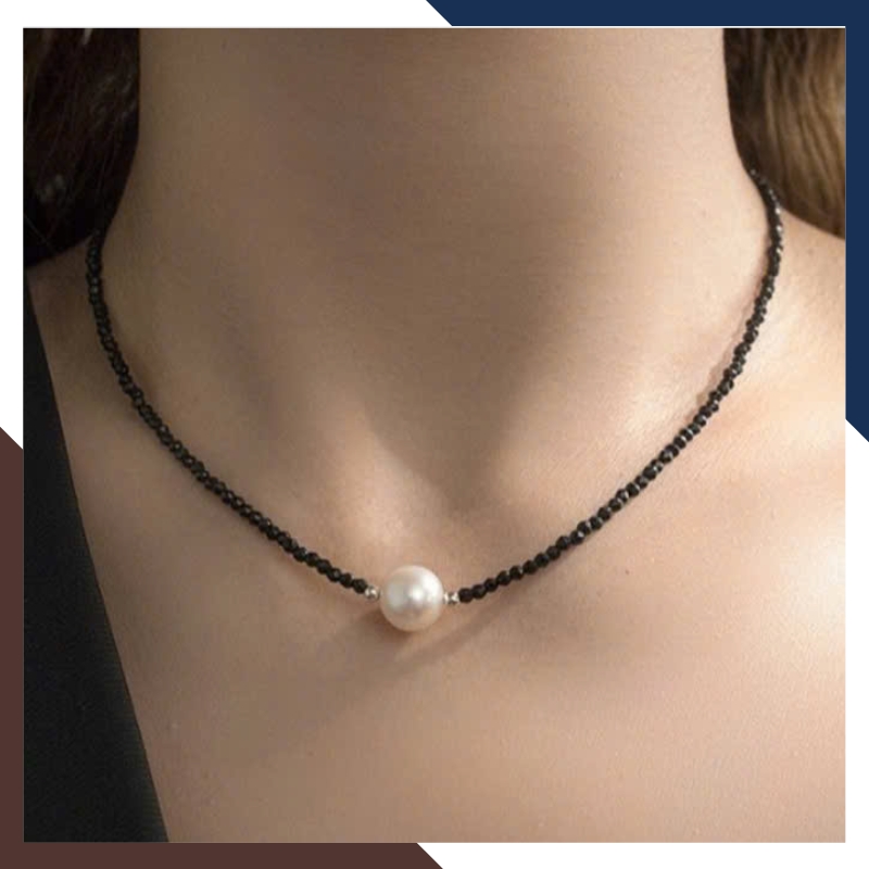 Sản phẩm " Vòng cổ pha lê đen cao cấp dáng choker đính mặt ngọc trai cho nữ đẹp mã T10AC220 " - sử dụng đá pha lê đen cao cấp và ngọc trai thật nuôi nước ngọt tự nhiên size 10-11mm màu trắng. Điểm nhấn của mẫu vòng này chình sự kết hợp giữa pha lê đen và mặt ngọc trai tạo ra sự tương phản nổi bật. Với thiết kế trẻ trung không chỉ làm tăng giá trị và tính thẩm mỹ của mẫu vòng cổ này mà còn tạo điểm nhấn hoàn hảo cho bất kỳ bộ trang phục nào tôn lên nét đẹp dịu dàng nữ tính, khiến cho người đeo trở lên nổi bật và thu hút ánh nhìn xung quanh.