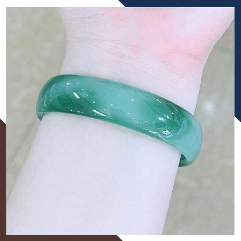 Kiểu dáng: Vòng tay đá mã não xanh liền khối bản dẹt 10mm