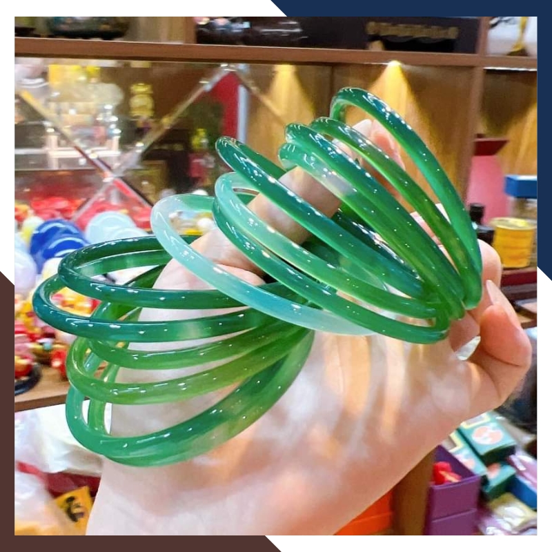 Đối với những quý cô mệnh Mộc và Hỏa, vòng mã não xanh liền khối bản tròn nhỏ chính là món trang sức phong thủy đặc biệt phù hợp. Trong phong thủy đá mã não xanh là biểu tượng của sự trường tồn và kiên cường, mang lại may mắn và thịnh vượng, giải trừ rủi ro, xui xẻo, với màu sắc tươi mát và sức mạnh đến từ tự nhiên, chắc chắn loại vòng này sẽ mang lại nhiều may mắn và thịnh vượng cho bạn.