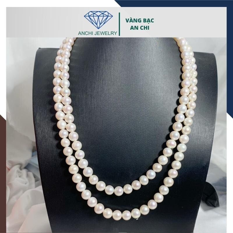 Ngọc trai cao cấp size 8-9mm, hạt tròn đẹp, xà cừ dày, bề mặt bóng mịn, hiếm vết sinh trưởng