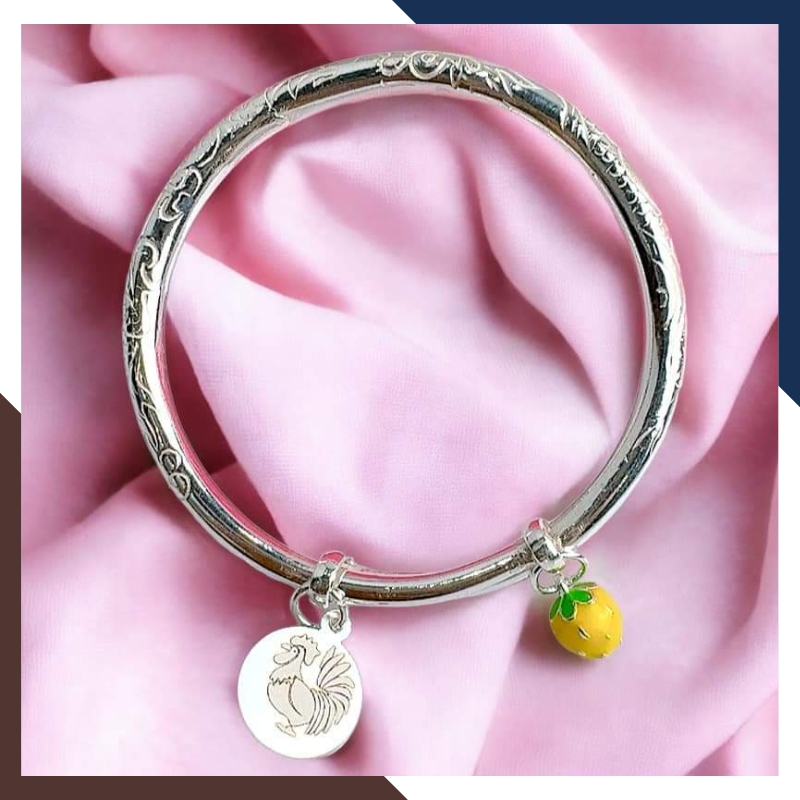 Sản phẩm " Vòng tay bạc cho bé, lắc chân trẻ em khắc tên và con giáp mã AC250 " với sự an toàn của bạc ta nguyên chất cùng với kiểu dáng kiềng tay trơn mix charm khắc tên và con giáp theo tuổi của bé, đây sẽ là một sự lựa chọn hoàn hảo mà các mẹ có thể dành tặng cho bé yêu vào các dịp đầy tháng, thôi nôi, sinh nhật hay tết thiếu nhi 1/6... Với sự lựa chọn này, các mẹ không chỉ trao cho bé yêu một món quà vật chất, mà còn là một biểu tượng của tình yêu và quan tâm vô điều kiện. Hãy để bé của bạn tỏa sáng và tự tin hơn bao giờ hết trong mỗi bước đi khiến cho mỗi khoảnh khắc của bé yêu trở nên thật sự đặc biệt.