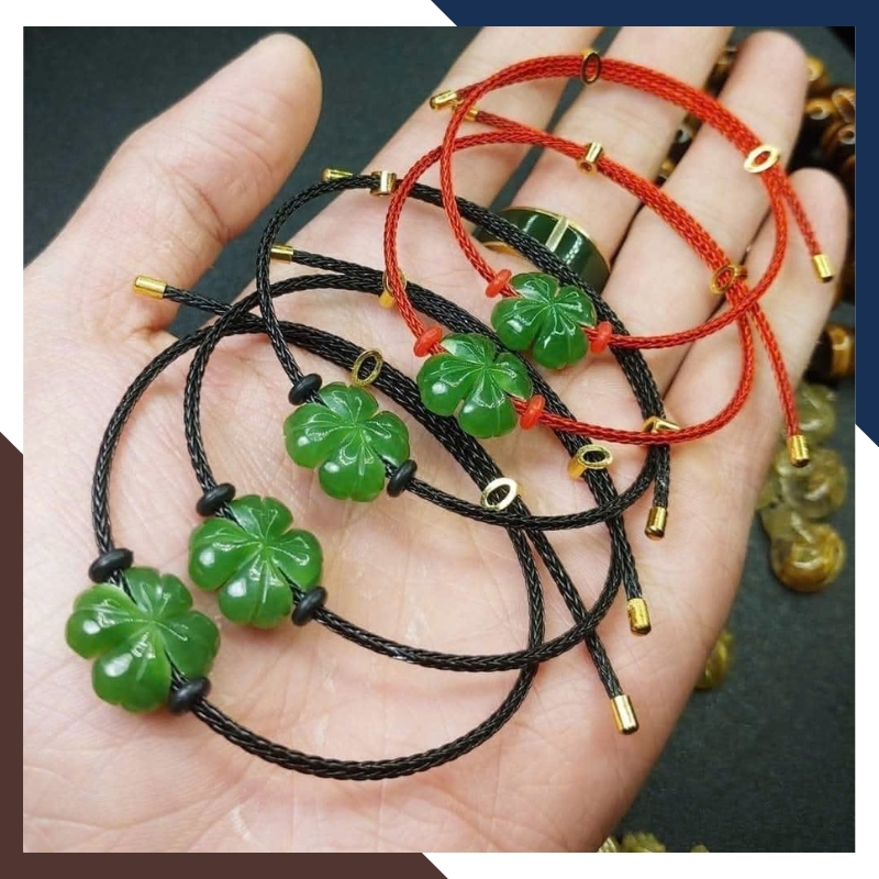 Vòng Tay Cỏ 4 Lá Ngọc Bích VTDPT20 – Bí Kíp May Mắn Luôn Bên Bạn