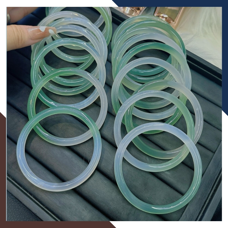 Kiểu dáng: Vòng tay đá Canxedon hay chalcedony trắng xanh nguyên khối có kiểm định
