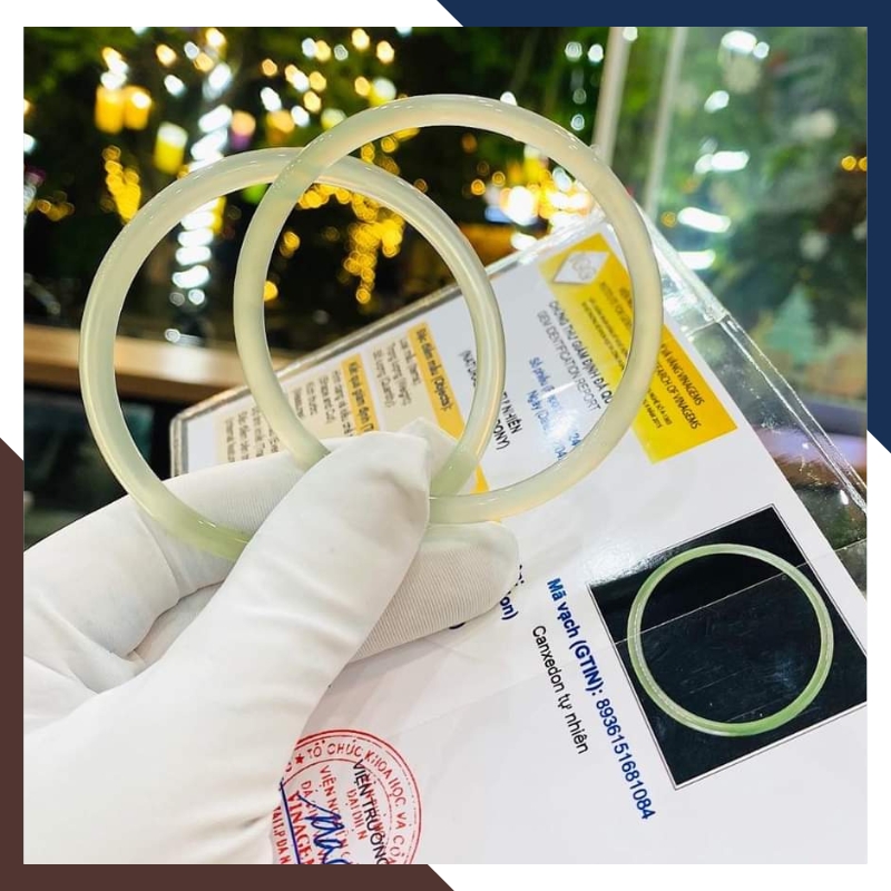 Đối tượng sử dụng: Vòng tay đá Canxedon hay chalcedony trắng xanh nguyên khối có kiểm định cho nữ