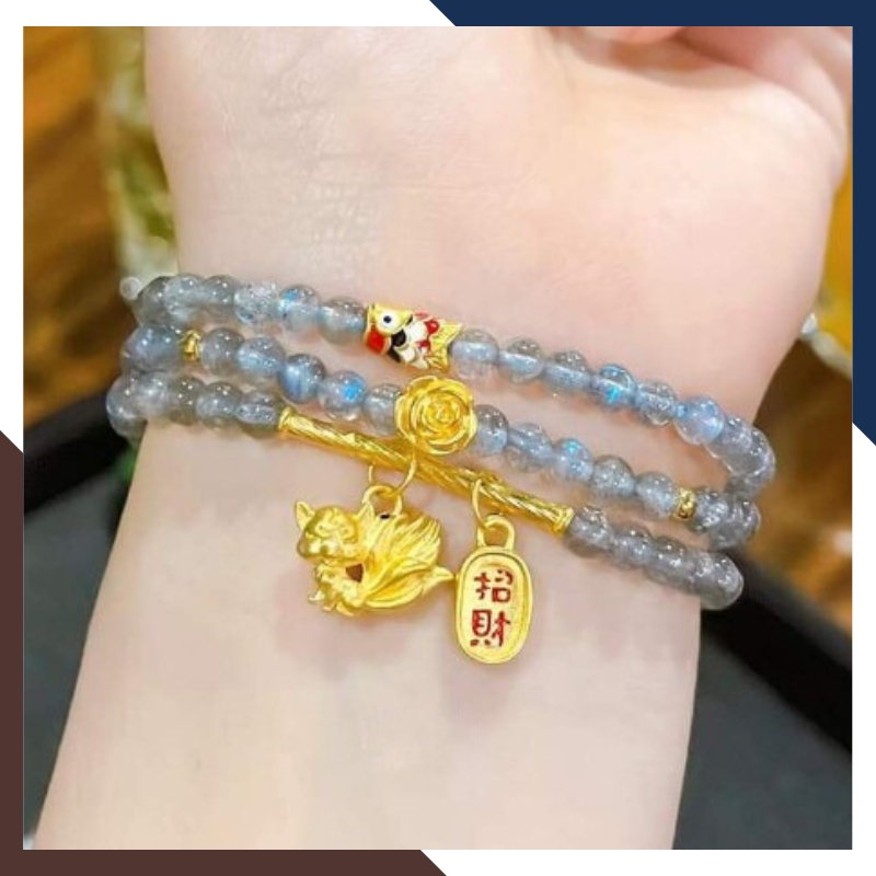 3.1. Ý nghĩa phong thủy của vòng tay đá xà cừ hắc nguyệt quang Labradorite mix charm vàng 24k cho nữ mệnh thủy
