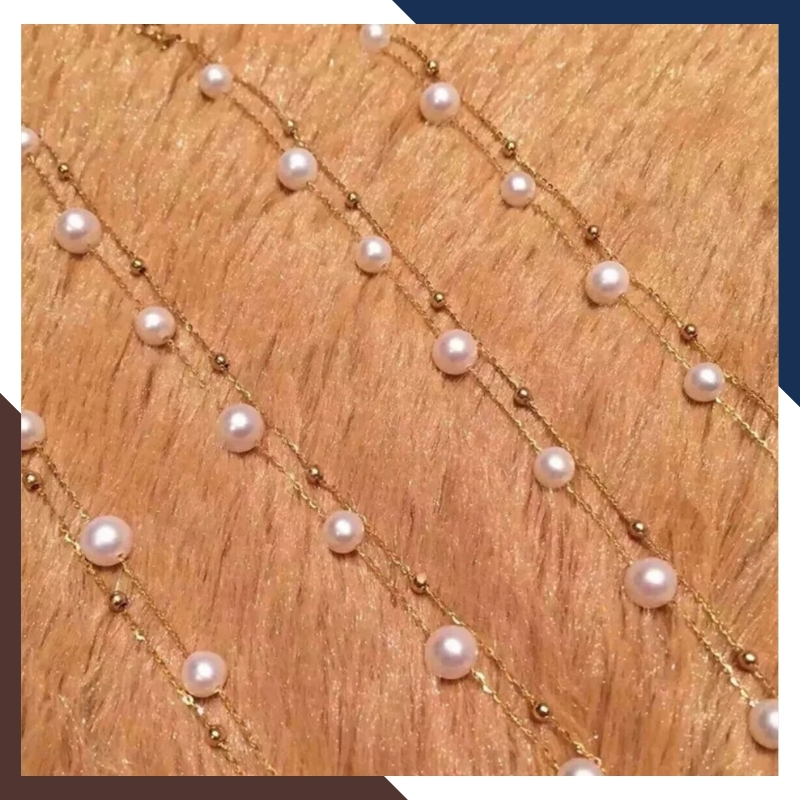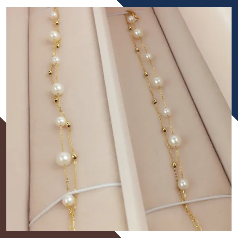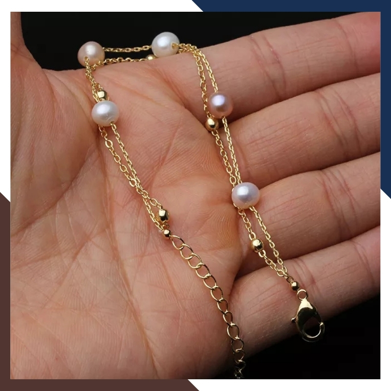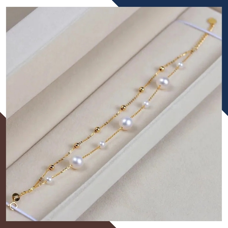 Kiểu dáng: Lắc tay ngọc trai 2 dây đôi mix bi bạc 2mm mạ vàng có tua chờ tự chỉnh size