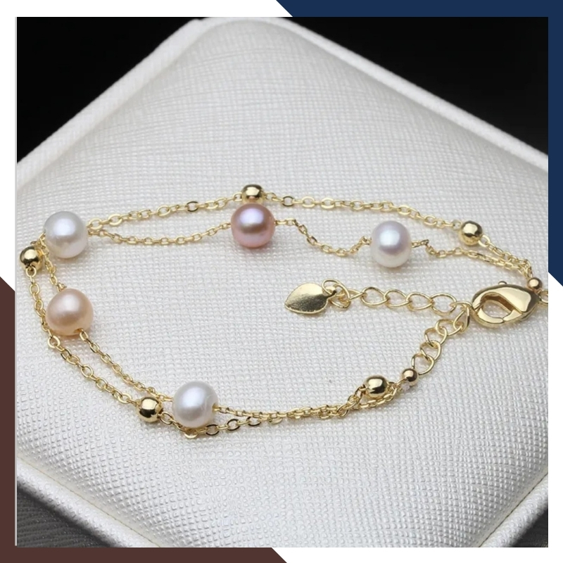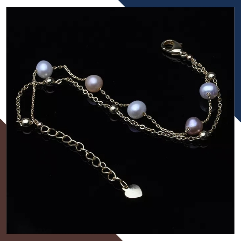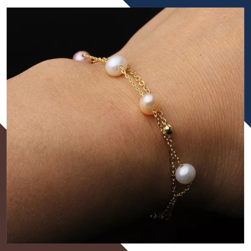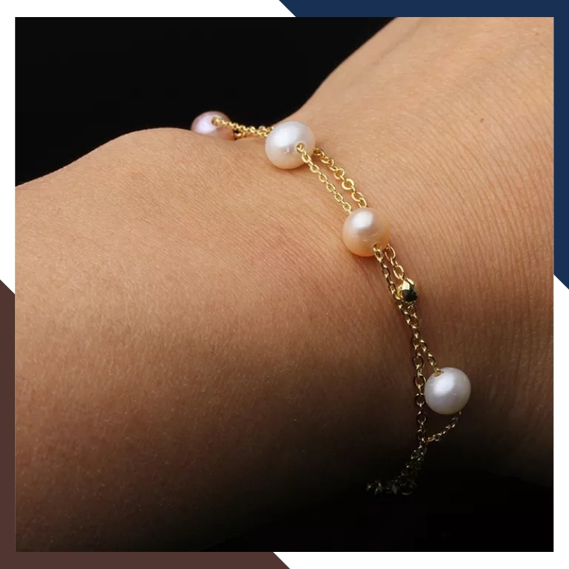 Vòng tay ngọc trai 2 vòng, lắc tay 2 dây bạc mạ vàng đính ngọc trai thật đẹp cho nữ mã 78AC240, được gia công trực tiếp tại xưởng không qua khâu trung gian đảm bảo giá thành cạnh tranh