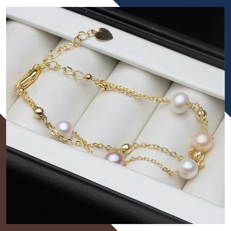 Vòng tay ngọc trai 2 vòng, lắc tay 2 dây bạc mạ vàng đính ngọc trai thật đẹp cho nữ mã 78AC240
