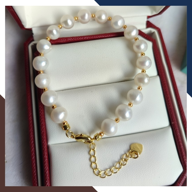 Kiểu dáng: Vòng tay ngọc trai thật phối bi bạc mạ vàng