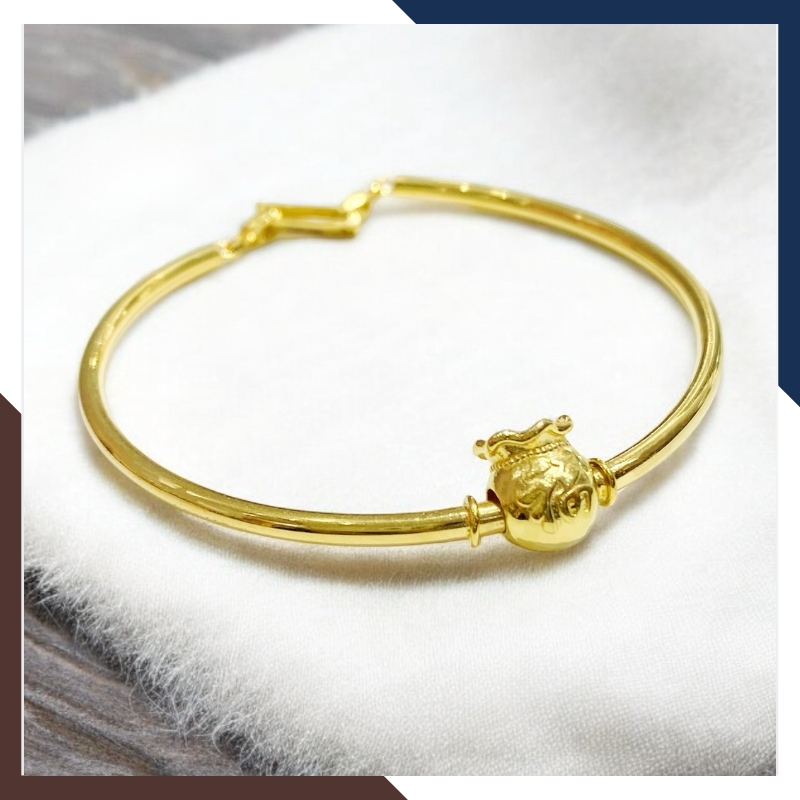 Từ phần thân vòng kiềng trơn bóng sáng như gương, đến charm túi tiền nhỏ xinh tượng trưng cho tài lộc, tất cả đều được kết hợp hài hòa, tạo nên một món trang sức vừa thanh lịch, tinh tế, vừa mang năng lượng may mắn, thịnh vượng cho người đeo.